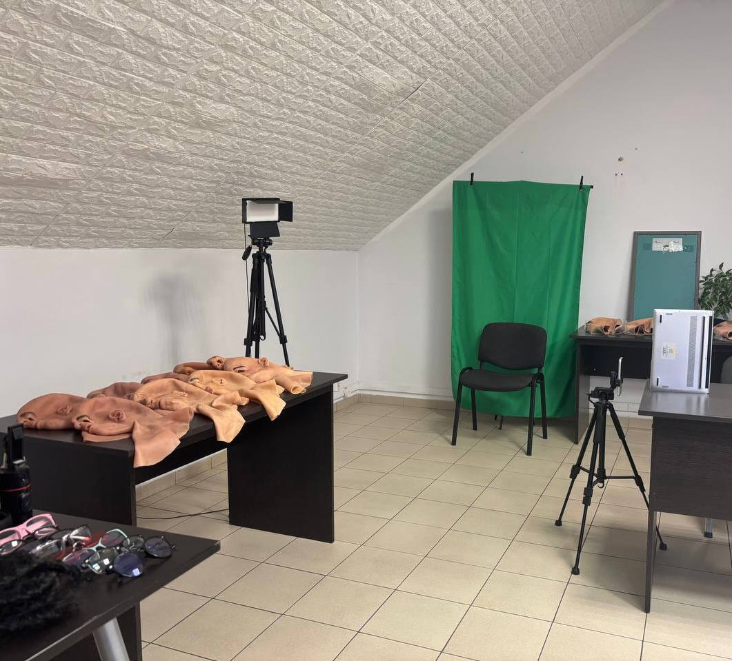 Dedicated studios with masks, props, and controlled lighting for spoof attacks
