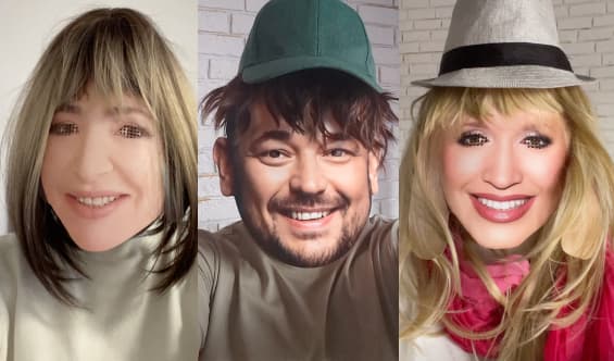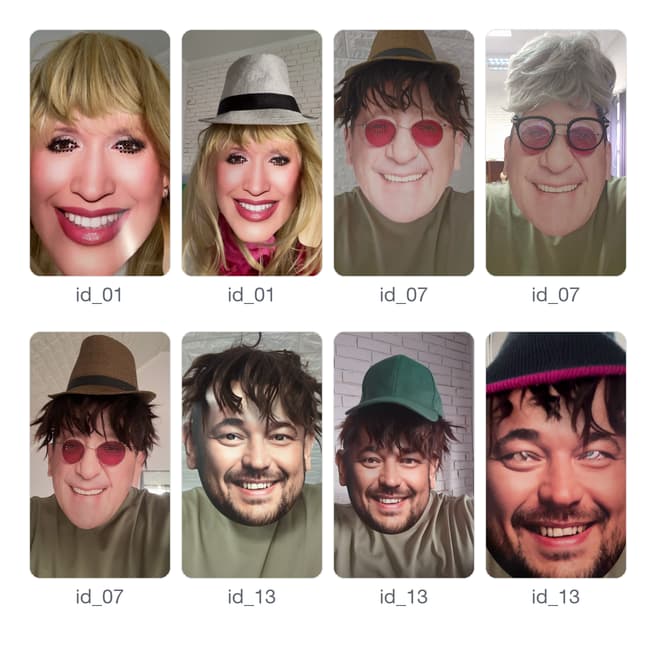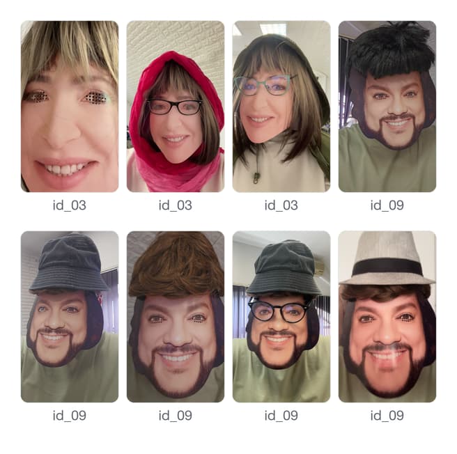 • Real accessories – wigs, hats, glasses layered on printed cardboard masks