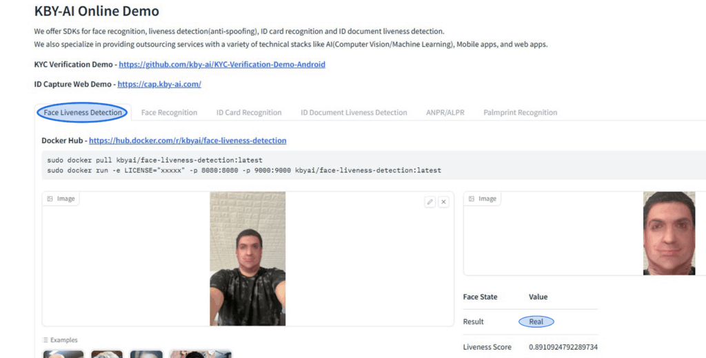 This screenshot demonstrates that our cloth mask attack successfully bypasses a face liveness detection model from KBY-AI — a widely used commercial solution known for its high performance in biometric verification systems. The model classified the spoofed face as Real with a high confidence score (0.89), confirming that even top-tier PAD systems can be vulnerable to this type of attack