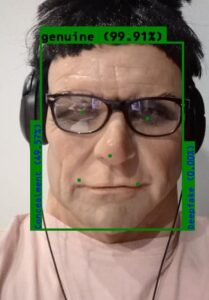 Key result: Doubango’s liveness classifier rated both silicone mask attacks below as 99.91% and 99.97% genuine, fully classifying the spoofs as real, living faces