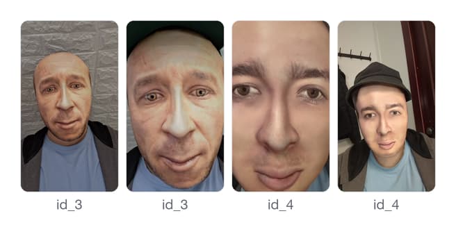 • Active liveness sequences: Zoom-in/out, head tilts, left/right rotation, natural movements